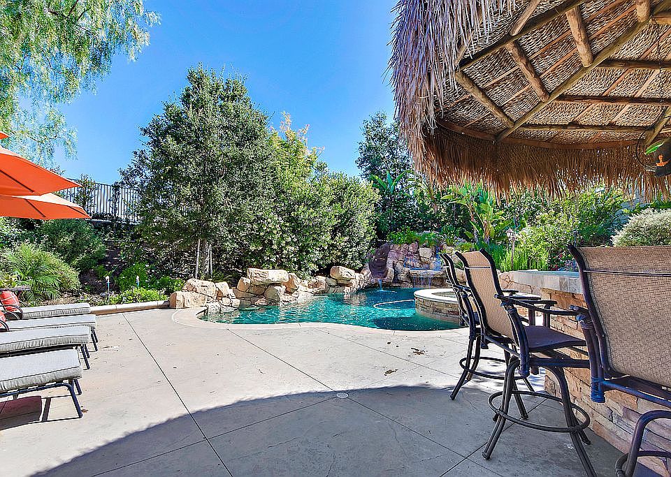 This is your own personal paradise. 4 bedrooms, plus an office, 3 full bathrooms. One bedroom is located downstairs .Exterior of the home was just painted. The backyard is your own paradise. Rockslide pool/spa, barbecue area with covered palapa, refrigerator, fireplace, also separate covered patio area. There are many places to lounge by the pool, barbecue, watch TV, sit by the fire ,with many tropical fruit trees. This is an entertainers delight Come see today. Exclusive community of Vista Del Verde, no HOA or mello roos