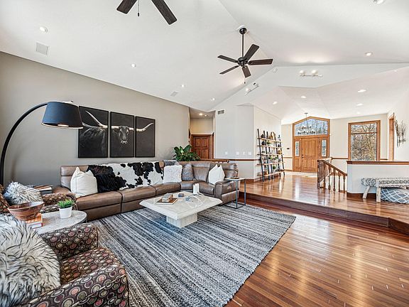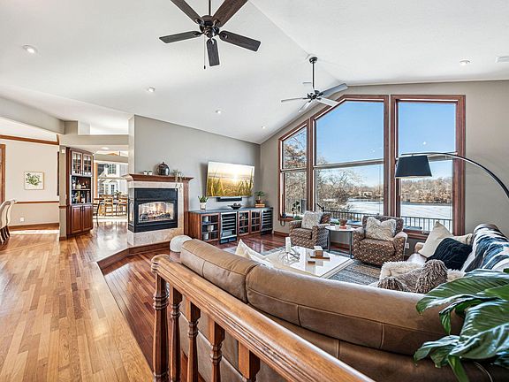 Stunning rambler on Goose Lake with loads of high-quality windows and amazing views year-round. Oversized rooms with gourmet kitchen - large island and an amazing amount of cabinets. Hardwood throughout the entire main floor. Beautiful new primary bath with dual head shower and soaking tub. Huge new Trex deck runs across the entire back of the home, both upper and lower levels, perfect for entertaining and enjoying the lake views. Lower level has a sauna, exercise room, entertainment room with wet bar/kitchenette, pool room + 3 bedrooms - all ample with great storage. Lower level has 1 full bath with dual sinks + one 3/4 bath. Lots of storage and space in this lovely home. Oversized heated 3-car garage with epoxy floors and loads of storage. Professionally landscaped. See supplements for the countless upgrades and renovations.
