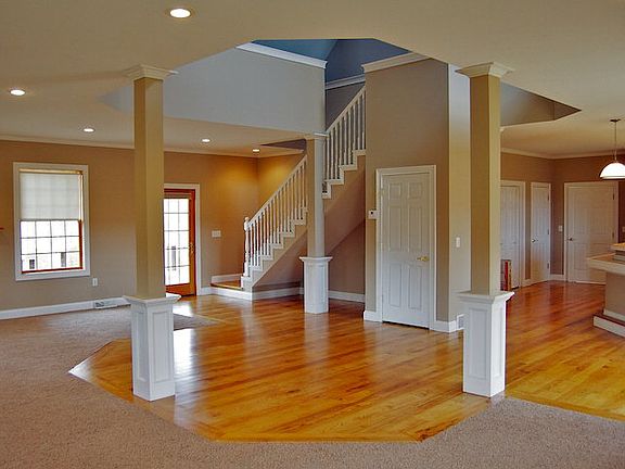 All new carpet throughout in September 2011. Super kitchen with hardwood floor, huge pantry, center island, and double oven. New deck off kitchen in October 2011. Gas fireplace in great room. 2.5 baths. Main floor area 2,178 sq. ft. Pella windows. Very ornate 4-square balcony over great room with cupola overhead. Laundry on main floor and hookup on second floor. Three-car garage (28.4 x 22). Oversized bathroom on main floor. Three ceiling fans. Additional 3.2 +/- acres available at $5,000/acre.