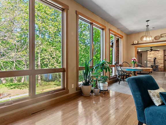 Stunning Riverfront Brick Ranch with Walk-Out Basement selling via Online Only Auction on Wednesday, June 26, 2024 -- Bidding begins closing out at 6 pm! Nestled within an idyllic riverfront setting, this stunning brick ranch with a walk-out basement features 5-6 bedrooms and 3.5 baths. The main level of this exquisite home is designed to impress featuring a formal dining room & formal living room with a corner gas fireplace. The open-concept eat-in kitchen is a chef's dream, offering custom cabinetry, and ample counter space for culinary creations. The family room, featuring a wood-burning stove, offers a cozy ambiance for unwinding after a long day, while the nearby half bath by the laundry room ensures convenience and practicality. The master suite is a retreat of its own with a corner gas fireplace that adds warmth and charm, creating a tranquil retreat within the home. The ensuite is a spa-like oasis, boasting a walk-in shower, a separate tub for indulgent soaks, and exquisite finishes that elevate the sense of opulence. The walk-in closet, originally converted from a bedroom, provides ample space for organizing and displaying an extensive wardrobe. Additionally, a guest bedroom and full bath complete the main level. The walk-out basement is an entertainer's delight, offering 3 bedrooms, a full bath, an exercise/storage room, and a secure safe room with a steel door. The open-concept area is a haven for recreation, boasting a pool table for friendly competition, a corner stone fireplace for cozy gatherings, a kitchenette/bar area for refreshments, and a theater room for cinematic experiences in the comfort of home. Outside, an enchanting fenced-in backyard and patio form an outdoor oasis, complete with a negotiable chicken coop, a potting room for gardening, and a swim spa area. Throughout the home, river views abound, with an abundance of windows that showcase the natural beauty of the surroundings. A 3+ attached car garage with a workshop area and attic storage provides the perfect finishing touch to this exceptional property. This property is the epitome of luxurious, riverfront living, offering a rare opportunity to experience the best of both indoor and outdoor living. Open House: Tuesday, June 18th 5:30-6pm & Sunday, June 23rd 1-2pm