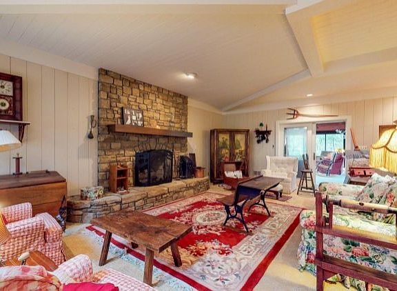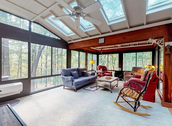 Looking for a 5-acre private wooded lot with a spacious home and an attached guest house? Located on a cul-de-sac, this property has potential to provide space for living, working, and entertaining. The main dwelling has three spacious bedrooms on the second floor, all with walk in closets. There is also a Murphy bed and full closet in the first-floor office study for additional sleeping space. The master bedroom has vaulted ceilings and the master bath has a glassed-in shower, spa like tub, and spacious vanities. There are four full baths including a jack and jill bathroom, and one on the first floor which was recently updated.