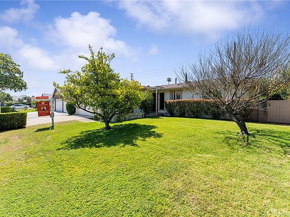 Lovely three bedroom, two-bath, single family home in a convenient location in the city of Tustin. This home has 1400 sq ft of living space with direct access to the two-car garage on a spacious 7200 sq ft lot. The living room is large and filled with natural light and features a delightful real, wood-burning fireplace. This home also includes a side gate with access to park a small RV, boat or toy of your preference. This home has many delightful touches including newly installed award winning by Energy Star for 2023 Pella Windows throughout as well central AC and heat. The water heater was replaced only 3 years ago, the roof the about 10 years ago, and the house was fully tented in 2022. In the backyard you will find a covered patio, newly resurfaced concrete patio and a collection of mature fruit trees including a Japanese Persimmon, Fig, Fuji apple, pomegranate, pear, lemon, tangerine, as well as an orange tree in the front yard. There are original hardwood floors under the carpet in the bedrooms, hallway and living room Close to shopping, freeways, hiking, and dining. Don't miss out on this charming home!
