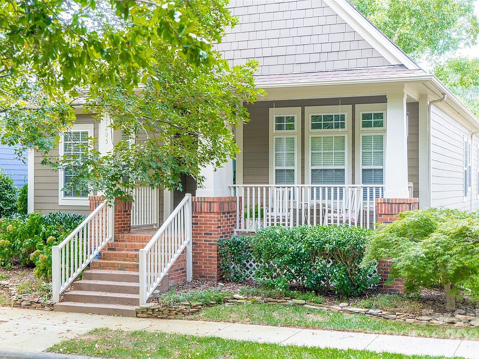 Welcome home to effortless, one-floor living in the heart of it all! This charming 3-bedroom, 2-bathroom ranch is perfectly positioned on a quiet street, offering the best of both worlds: it's just steps away from the bustling energy of Birkdale Village, while the neighborhood park sits right outside your front door. Imagine sipping morning coffee from your front porch with a serene view of green space and enjoying lazy afternoons where adventure is always within reach. Inside, you’ll be greeted by an open floor plan where high ceilings create an airy, expansive feel. Hardwood floors flow throughout much of the main living area, blending elegance with easy maintenance. The single-level layout is ideal for both daily living and entertaining, offering convenience and comfort at every turn. Step outside to a fully fenced backyard with a patio, perfect for grilling, gardening, or simply unwinding in your own peaceful oasis. The detached two-car garage provides ample space for vehicles, hobbies, and storage. The true magic of this location? You can trade driving for strolling! Leave your car behind and walk to Birkdale Village’s fantastic shopping, dining, and year-round events. Catch a movie, savor a delicious dinner, or enjoy a Friday night concert—all without ever worrying about parking. Don’t miss your chance to own a home that perfectly blends peaceful, single-level living with a vibrant, walkable lifestyle. Come see it before it’s gone!