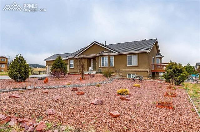Sharpe stucco/stone ranch home with tile roof in south Woodmoor *Situated on a spacious lot this low maintenance home offers the comforts of main level living, along with convenience to schools and shopping*Entry opens to a front office/4th bedroom, with divided light french doors*Counter bar kitchen has upgraded stainless appliances, w/ frig, gas range/oven, slab granite, medium maple cabinets and a large walk-in pantry opens to the bayed dining area*Great room has gas log FP and walks out to the side deck with perfect.. Pikes Peak views and access to the patio and back yard*Private master with bay window and Peak views, 5 piece bath & walk-in closet*Completing the main level is a guest suite, full bath, and laundry room*Full basement with a huge rec area, room for ping pong, pool table and large flat screen, great place to entertain*Full bath and bedroom,plus storage*Oversized garage, central air, and more, show today!