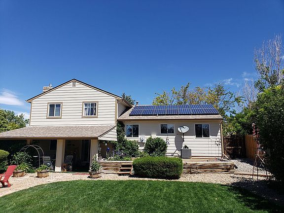 This house shows pride of ownership throughout. Completely updated and remodeled from top to bottom inside and out. All new stainless steal appliances in kitchen, new and updated cabinets, with new flooring throughout the house. Newly painted both inside and out. All new roof and solar panels that are owned and go with the house. All new (2020) AC, Furnace, Humidifier and water heater! A backyard to enjoy the Colorado summers and winters(heated) with a water feature complete with fish! Enjoy entertaining your family and friends under the covered back porch! Nested on the corner lot in a cul-de-sac. This house truly has it all!! This house will be a pleasure to show your buyers!