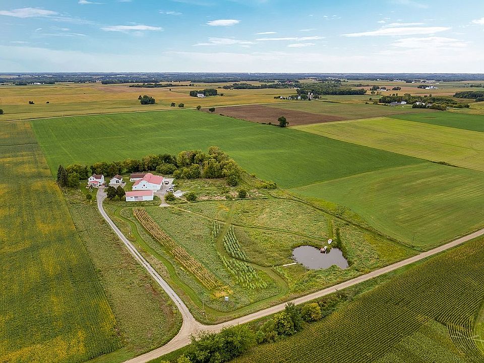 9 acre country life Paradise with High Speed Internet. Catch every Sunrise off the Front Porch and every Sunset off the backyard. The house has new carpet, paint, Granite Counters, newly insulated attic and a full fresh maintenance on the furnace. The house has a new 1 year old Main floor Master with a 17' x 7 walk in closet. The upstairs has 2 great bedrooms with an Office and large hallway closet. The main garage is 30x36 fully insulated and heated. 2 cars and a work bench and room to relax. There are 2 single stalls that have a 40x60 tar driveway. The Little bar is next to the garage and it is 30x50 with a loft. In that barn is a heated 20x10 dog kennel that leads to an outside covered kennel of 20x 20. Then that leads to a grass no roof kennel that is 30x40. All newly wired and clean. Next to this little Barn is an outdoor firepit and kid play area. Kid play area has a cement basketball court of 40 x40 and a kids playset. Now the Big Barn. The big barn was a hoop barn built in 1963 and the lower part of the barn is 40 x80 and consists of storage, a wood shop, a toy room, a storage room, and a workshop. In the top of the Big Barn is the "Party Barn". The party barn is set up with everything any Sports Bar would ever have. It also has 16' Ceilings and is heated and insulated for good times all year round. It has a 8x6 deck to enter it. Connected to the Big barn is another fully insulated/ Cemented 32 x 80 with 10" ceilings GARAGE! This has a 10x11 powered overhead door and is all cement from 10' outside the door. This building has 2" of Spray foam and holds heat very very well. There is also a shooting range set up on the property with cement pad and shooting shack for chairs and other earphones. The last building on this property is a 40x80 Machine shed. We call it our Flag Barn. It is divided in half for our animals and tractors/ wheelers. It also has a hand painted 20x30 American Flag that is visible for a mile. All the buildings are freshly painted and have updated wiring. The driveway from the mailbox all the way into our yard and around the buildings is about 52 dump truck loads of Crushed Granite. Now to talk about the actual land.....The soil is good ol St. Nick Black Dirt. Some of the best around. We have a 20x30 garden that spoils us. We also have a 500' long 40 wide garden that goes along the driveway to grow Sweet Corn on and acts like a great snow fence in the winter. On the perimeter of the property is almost 3,000 feet of 4' tall chicken wire. On the fence are nearly 100 separate grape vines actively growing. We also has approximately 8,000 trees that have been planted in the last 5 years. The trees are planted along the south, west and north lines. Lastly we have a 1 acre fish pond. It has a variety of fish stocked in it. There are many turtles and ducks that love it too. The pond has electricity ran to it and an aeration system that keeps the fish happy! This property also has a great 10' wide grassy trail through it all. We love it to walk the dogs and sometime cruise on the "farm Cart". The Trail is the shape of the State of MN and the Pond is the shape of a Gold fish cracker. Thanks for reading!