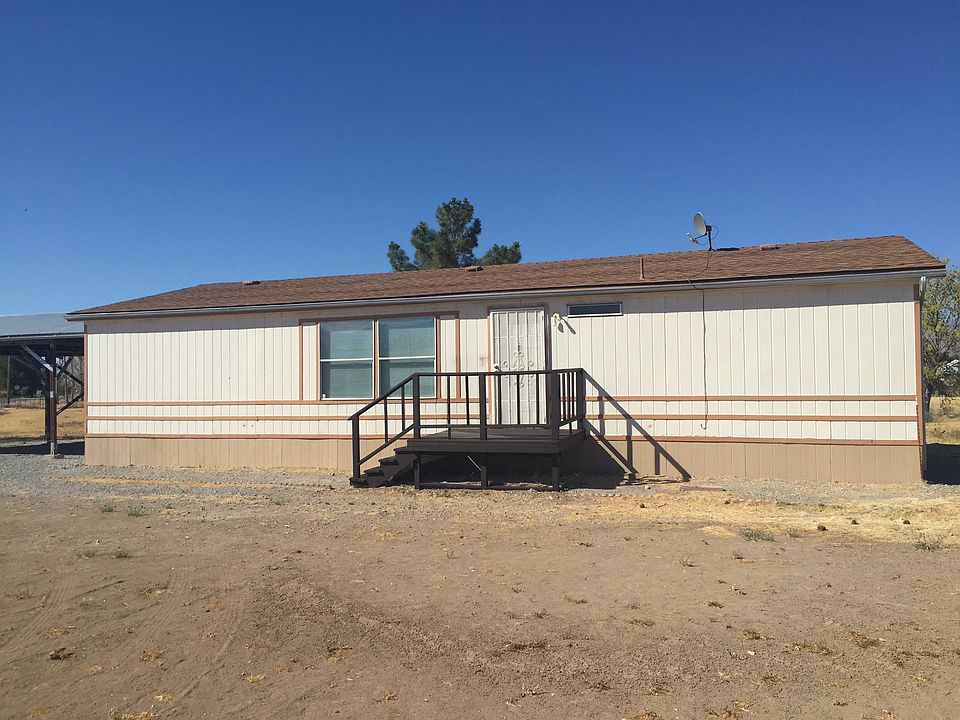 Must see! Partially updated. New Carpet, interior paint, new garden tub in master bathroom, including white kitchen cabinets, Re-leveled last month. New Skirting, 25x35 covered carport. Corner Lot, 2.1 Acres Lots of room to grow and close to BLM.