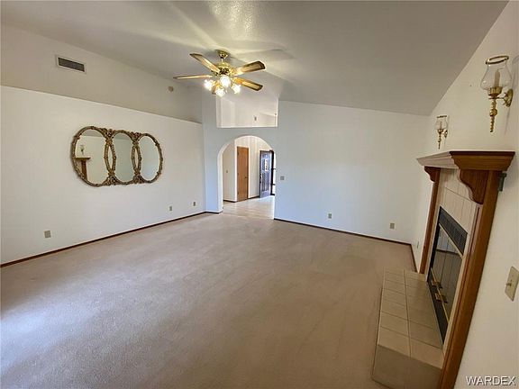 Excellent Location! Immaculate inside and out! Open entry with high ceilings and tiled flooring, Dine-in kitchen with electric smooth top stove, built-in microwave, dishwasher, and refrigerator. Spacious living room with fireplace, pot shelves, ceiling fan, and sliding door to rear covered patio. Indoor laundry (washer and dryer stay) RV parking with a large concrete slab. This home shows beautifully and is MOVE IN READY!