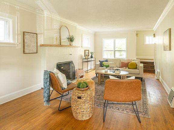 Gorgeous hardwood floorsWood burning fireplaceNew flooringTwo car garageFormal dining roomAdditional parking spotMature trees