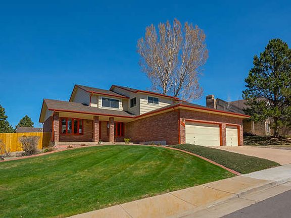 Two-story brick with a finished, walk-out basement and main floor bathroom. Great view of the mountains. Built by Harrison Homes in 1987. Note the quality construction – e.g French drain around the foundation, oak flooring and six panel doors. 6 bedrooms, 4.5 baths, 2 Family Rooms, 1 study, 1 recreation room, 3-car attached garage, 2 walk-in closets, 2 redwood decks, 2 bay windows, 2 skylights and a covered front porch. Oak flooring on the main level in great condition. A whole-house fan installed in the attic. This home is wired with coaxial cable so TV available in seven rooms. GFA heat, central air conditioning and 1 fireplace with Heatilator and external draft. Built in appliances, refrigerator and dryer are included. Striking landscape: a matching-color concrete border curbs the beautiful lawn; a picturesque Colorado Blue Spruce and red sandstone flagstones punctuate the front yard. A six foot privacy fence encloses the back yard. 2015 replaced 6 windows with Renewal by Anderson windows. 2012 replaced refrigerator. 2006 replaced dishwasher, all upstairs carpet and replaced kitchen counters with granite and new sink. 2006 replaced water heater. 2003 replaced furnace and roof. Great location: easy access to C-470, University, Broadway and Santa Fe, close to schools, shopping, light rail and Abbott Park. The Village of Four Lakes is charming, quiet neighborhood with award winning schools, community swimming pool, spa, tennis and basketball courts – very low crime. Many of us walk the neighborhood for exercise. The Village of Four Lakes Home Owners Association has a long-term view – as demonstrated by their investing in an efficient sprinkler system for the common grounds and post-tension concrete tennis courts.