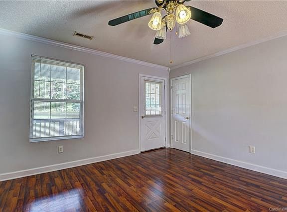 Home has just been painted, laminate flooring, range and refrigerator included, covered front porch, deck on rear, concrete driveway with space to turn around, split bedroom plan, inside laundry area, owner has never used gas log fireplace and not sure of condition, propane tank is for gas logs only, Duke Energy, county water, move in ready