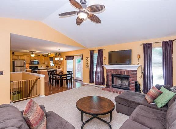 Open house cancelled. 4 bedrooms/2 baths/2 car garage. So many recent UPDATES: carpet in living rm, bedrooms & stairs, ceramic tile in bathrooms, all lighting, ceiling fans in bdrms & brkfst rm, whole house painted, stainless steel appliances & the basement finish which includes: canned lighting, trendy painted exposed ceiling, gorgeous laminate floors, 4th bdrm, a 2nd laundry area w/ utility sink & stained concrete floor, extra storage closets & newer sump pump. Inviting foyer w/ hardwood floor leads to the vaulted great rm w/ wood burning fireplace which is open to the kitchen/bkfst rm w/ newer laminate floors, pantry, newer disposal, plenty of cabinets w/ new hardware & a cute mud rm which has hookups for main floor laundry. The bkfst rm door leads to the pretty patio which overlooks the large, private, tree-lined backyard w/ freshly stained fence & added drainage system. Super clean & move-in ready! Close to highways 364, 40 & 70. 13 month home warranty!