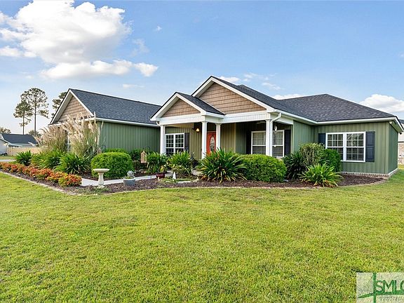 NEW PRICE! This stunning custom built home in Guyton has everything on you wish list plus more. Exquisite landscaping & walkway leads you to a charming covered front porch featuring a wood ceiling. As you enter the home, you are welcomed by the warmth of the fireplace with detailed trim as well as coffered ceiling adding further depth to the room. Barn doors lead to the kitchen where you will find designer lighting, farmhouse sink with gooseneck faucet & specialty cabinetry (roll out shelving for pots/pans!) Cabinetry continues in the laundry room for ultimate organization. Primary suite is not to be missed with 3 closets! The lux bathroom includes fully tiled shower with rainhead, garden tub & stylish tilting mirrors with dual vanities. The backyard is an entertainer’s dream with extended covered porch & galvanized paneling for an intimate & chic space. Smart speakers in living spaces & patio add to the ambience while entertaining or relaxing after a long day. Shed for extra storage!
