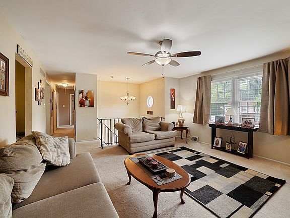 This Willowbrook beauty is ready for you to unpack your bags! 4 bedrooms, 2 1/2 updated bathrooms. Updated, eat in kitchen with corian counters, bamboo flooring, cathedral ceiling, ceiling fan with light, island, recessed lighting, new Kitchen Aid dishwasher, side by side refrigerator, and new Andersen sliding door. Most of the home has been freshly painted. Ample size primary bedroom with primary bath, with tile floor, updated vanity and lighting, and stall shower. The hall bath has a tub, updated fixtures and vanity. Two other bedrooms and a hall linen closet. Downstairs has the 4th bedroom, half bath, under stair storage and another closet. a fabulous family room with a wood burning stove with brick surround and hearth, plank flooring, work out area, new Andersen slider to huge , fenced in back yard with a patio and shed. The laundry room has a sink, access to back yard and 1 car garage. Don't delay, make your appointment today!