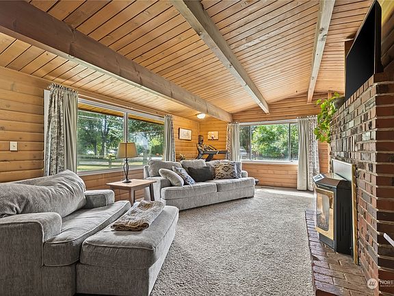 Tucked away off the beaten path but just around the corner from CWU, this cozy 3-bedroom, 1.75-bath Pan Abode home offers the perfect blend of tranquility and convenience. Inside, you’ll love the huge gas fireplace with its beautiful brick surround. Plus, the new gas furnace, installed in Spring 2023, ensures the home stays cozy and energy-efficient all year. The park-like yard features mature landscaping, garden space, and a fully fenced backyard with fruit trees—perfect for relaxing or entertaining. A detached garage provides extra storage or workshop space.The spacious front yard adds curb appeal, and is located in very close proximity to a city park. With this home priced to sell, you won’t want to wait!