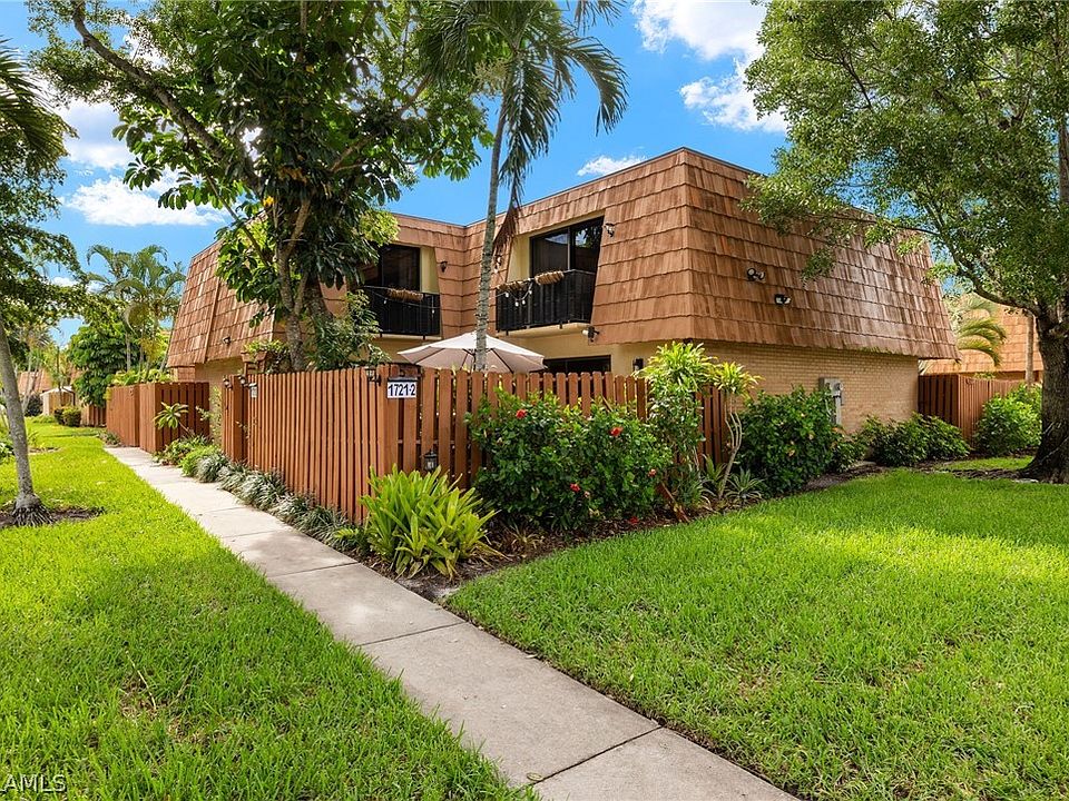 Seller is having a New RE-ROOF INSTALLED Walking distance to shopping, restaurants, grocery store and shopping mall and a short drive to the Sandy BEACHES of Fort Myers and Sanibel Beach, a 279-acre public park, Airport, downtown Fort Myers and downtown Cape Coral (with many events like Music Walk, Bike night, Art Walk and many more. This unit features 2 LARGE bedrooms, HUGE Living room, Open Kitchen, lots of Natural light, all the appliances, Faux Fireplace, Indoor Lundry Room that includes the washer and dryer, 2 upper balconies, a full bathroom on each floor and a fenced-in brick paver patio to enjoy your morning coffee, evening book, or barbecue, (BBQ pit included) Great property for a permanent home, investment income or even a great get-a-way vacation home you can just lock the doors and leave with no worries. The community has LOW HOA FEES that includes your lawn maintenance & community POOL. A Must See! PRICED TO SELL!!!!