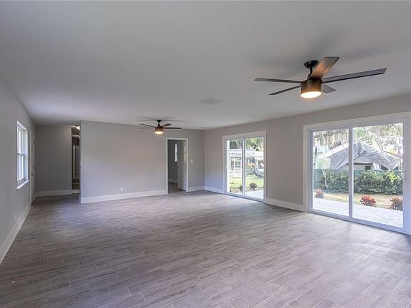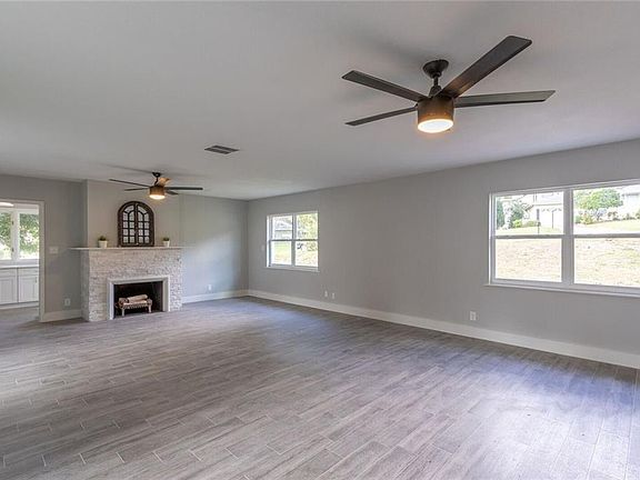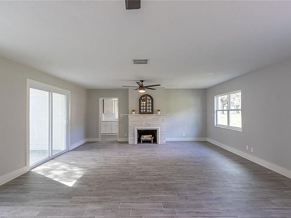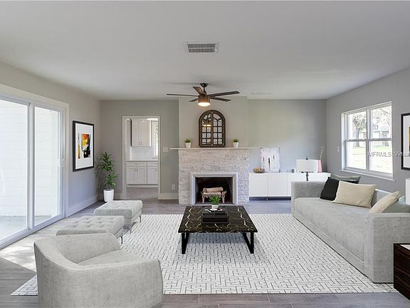 One or more photo(s) has been virtually staged. This beautiful 3-Bedroom/2-Bath home has been elegantly renovated and is a must-see! It sits on a corner lot in the middle of an established neighborhood and has peek-a-boo views of Lake Minnehaha. It has beautiful curb appeal with updated landscaping and mature trees. Step inside the front door and you will enter a large family room with picture windows and a beautiful wood burning fireplace. It has been beautifully updated with fresh interior paint and new wood look tile flooring throughout. The modern kitchen is lined with windows and features rows of beautiful white cabinetry with crown molding, quartz countertops, pendant lighting and a brand-new stainless-steel range. A quaint dining room sits adjacent to the kitchen, and both rooms feature a decorative wooden ceiling. Three bedrooms sit on the opposite side of the home including the master suite with vaulted ceilings and an adjoining master bath with dual vanities and a large walk-in shower. One of the bedrooms opens off of the family room and would make a perfect den or office. There is a 23x10 patio that sits high and overlooks the backyard which is fully fenced. There is also a detached two-car garage and ample parking space. Some of the other notable upgrades to the home include a new roof in 2018, new sprinkler system, updated landscaping, updated plumbing, and a new AC in 2011. This home is absolutely beautiful and is ready for you to make it yours today!