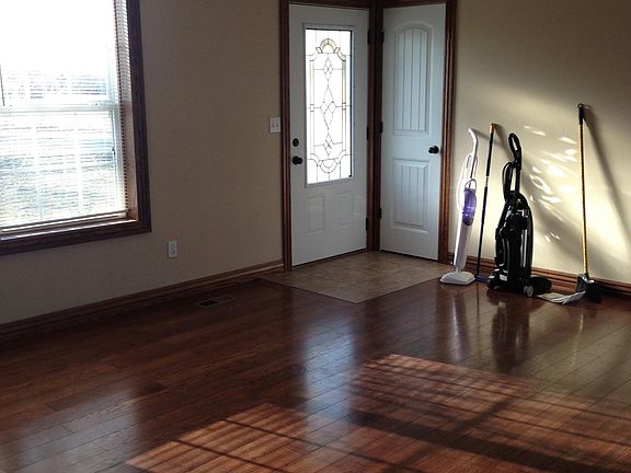 Ceiling fans, large deck, hardwood floors, tub shower in main,walk-in shower in master, full laundry room with cabinets and laundry hookups, large garage with the water heater and furnace in the garage, heat pump to help you save on electricity, range, refrigerator dishwasher and micro included in the rent. His and her closets in the master. House is in Webb City school district Renter pays utilites and mows the grass. Lease is for one year with the penalty of one months rent for breaking the lease. No smoking please and no pets.