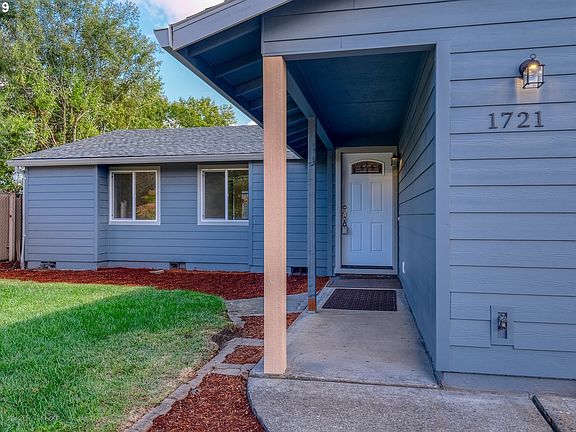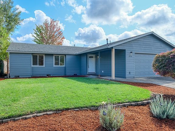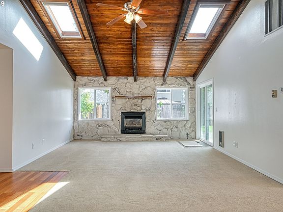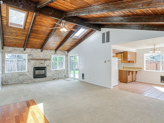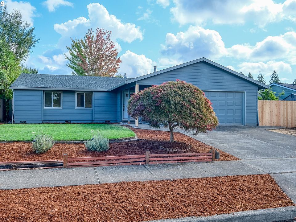 Solid one level home in Forest Grove. New upgrades: exterior siding, garage door, windows, sliding glass door & front door, gate. All new interior white doors, new baseboards. Newer architectural comp roof 2 years ago. Updated master bath & main bath. Vaulted great room with beautiful beamed ceiling. Gas fireplace. Kitchen with breakfast bar & eating area. Fenced yard with shed, patio, fruit trees & potential RV parking on the side.