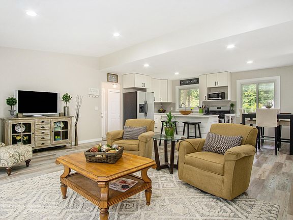 Located on a quiet cul-de-sac in Norton Shores, you'll find this beautifully rehabbed 3 bedroom 2 full bath ranch home with an attached garage. No surface in this home has gone untouched. From new kitchen cabinets, laminate floor and carpet throughout, stainless steel appliances, quartz countertops with underlay sink, complete bathroom remodels, 100 amp power panel and 2019 hot water heater replacement to name a few. This home offers a modern, open concept layout perfect for large gatherings or simply being together as a family. You'll find a generous amount of natural light provided by the numerous windows in each room. The basement is spacious and ready for a playroom, office space or man cave for entertaining. The backyard is met by the forest where you'll see an abundance of wildlife. Call Caleb today to close this deal before it's gone!