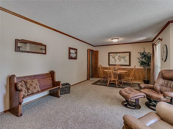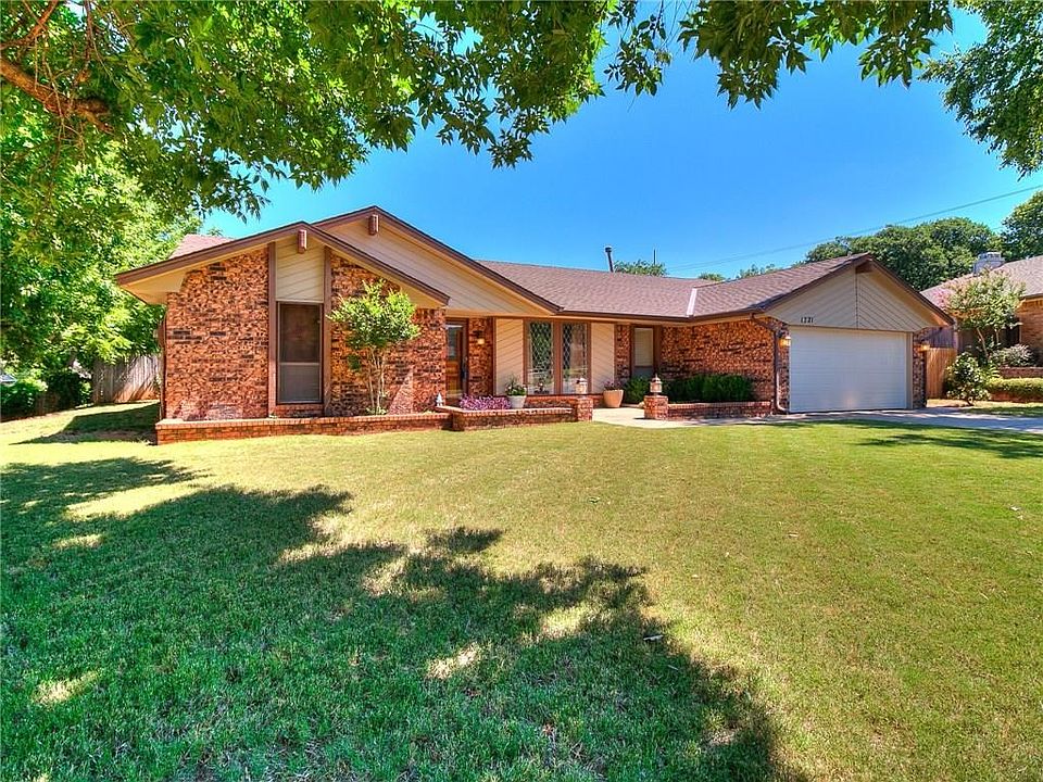 You will love this beautiful home in the desired East Edmond area! Pride of ownership shows in this well-cared-for home. With 2 living and 2 dining, there is flexibility in the layout. The entryway features lovely stone floors. Formal living/dining in front, family den with wood beam, wood-burning fireplace and built-in bookshelves in back. Remodeled kitchen features updated countertops, cabinetry, tile floor and backsplash, and stainless steel appliances - even under-cabinet lighting! Master bedroom is nice-sized with vaulted ceiling, window seat, 2 closets, and updated shower tile. Secondary bedrooms share a Jack-and-Jill bath with separate vanity area. Huge backyard with patio is great for sports and entertaining. Workshop has electric, window unit and insulation for year-round use. New garage door and exterior paint in June 2017.