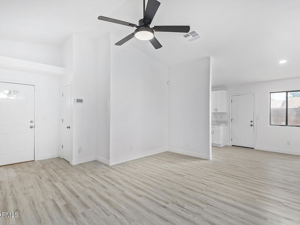 Location, location, location! This tastefully updated single-level home seamlessly blends comfort and style. With 3 beds, 2 baths, and a 2-car garage, it efficiently accommodates modern living. Discover a semi-open layout paired with welcoming living & dining areas, neutral palette, wood-look tile flooring, and vaulted ceilings that add to the airy feel. The spotless kitchen comes with quartz counters and white shaker cabinets. Main bedroom is a good-sized sanctuary designed for relaxation! It boasts a walk-in closet & a private bathroom w/dual sinks. The backyard is a versatile space, featuring both covered & open patios that invite al fresco dining or enjoying BBQ. An RV gate opens to an alley, offering practical access and storage possibilities. Fresh paint inside & out! Don't miss it!