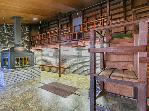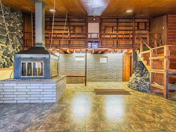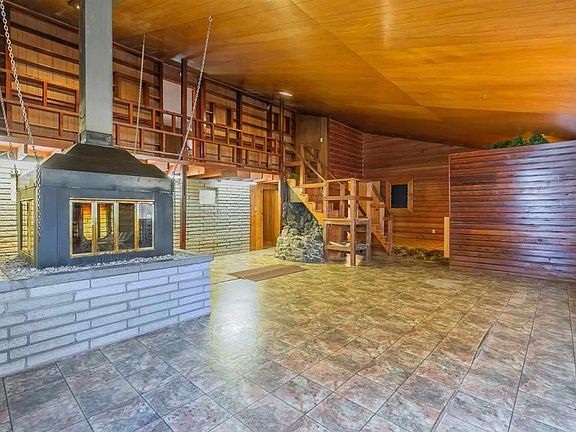 An awesome looking lodge right inside of town. Walk into an inviting foyer and look into the Huge living room with a Big, Big, Big wood burning fireplace and a fountain that is extraordinar. Offers a little bar area and a nice galley kitchen with custom built-in cabinets. Some cabinets pull out into a desk. Lots of spacious closets in every bedroom. There is a big room upstairs that can be used for a fifth bedroom, game room, man cave, office or whatever you wish it to be. This home is very unique at its best. Has a detached garage with a built-in workshop including electrical and concrete floors. Offers a doll house, wishing well and dog kennel. Very close to schools