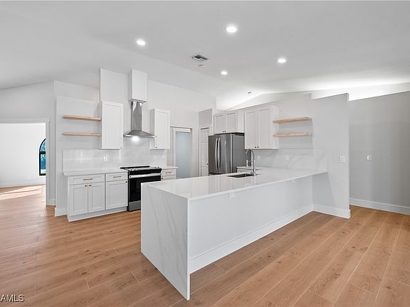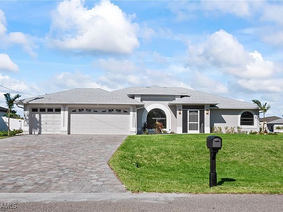 NEW PRICE ALERT – Style, Space & Location All in One!! Let’s be real — this home has everything. Pool home? Check. Prime location in Southwest Cape Coral? Check. Just blocks from dining, shopping (yes, including Starbucks), and top-rated schools? Check, check, check. It’s in a no flood zone, sits on a corner lot, and has a spacious 3-car garage. The upgrades? Next level. Brand-new pavered lanai and driveway, new roof and pool cage, impact-resistant windows and doors, fresh landscaping, and lush Floratam sod with irrigation — all done. Inside, it’s even better. You’ll find oversized porcelain tile planks throughout, a custom wine and coffee bar, quartz countertops with a waterfall edge, floating shelves, a full stainless steel appliance package, and epoxied garage floors. The bathrooms are total showpieces, featuring a walk-in shower, a freestanding tub with a chandelier above, and brand-new vanities. The kitchen? Completely redone with all-new cabinets and high-end finishes. Honestly, the list goes on. This home is basically brand new from top to bottom — and not a single detail was missed. If you’ve been waiting for “the one,” this is it. Go ahead and schedule your private showing today — you’re going to love it.