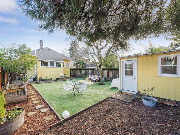 Located on a quiet street in Central Alameda near downtown, parks, schools, retail, the north shore estuary, Alameda Point attractions, and SF ferries, this enchanting 1910 Bungalow exudes vintage charm with elegant original features, tasteful updates, and expansion potential. Exceptionally appealing inside and out, this single-level home offers one bedroom, one bathroom, living room and formal dining room, utility/laundry room, pantry, a full attic, and a bonus out-building perfect for a home office, maker space or music room. Original vintage details include 9-foot coved ceilings, box beams, built-in cabinetry, leaded glass hutch, a large pocket door, Douglas fir floors, picture rails, a stunning stone fireplace, light fixtures and more. The deep, private back yard presents expansion possibilities, sunsets galore, a gorgeous mature Magnolia tree, a majestic Redwood tree, raised vegetable/planting beds, and low-maintenance artificial turf. Newer roof, furnace, water heater, main water line and more. Sewer lateral & gas shutoff in compliance.