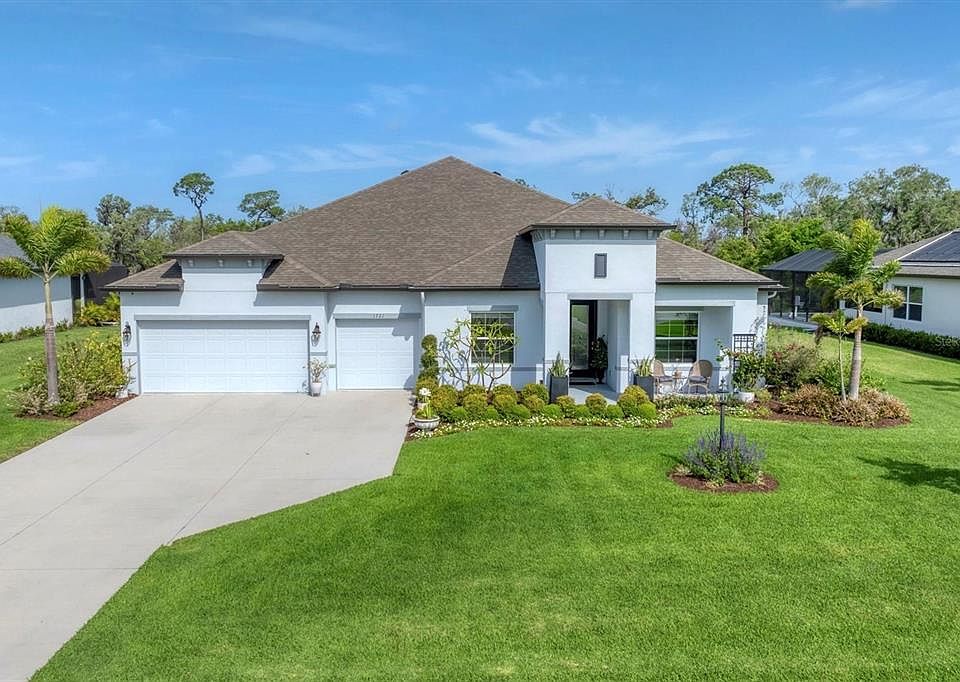 *MOTIVATED SELLER* Welcome to this spacious 2020 constructed home with fantastic curb appeal in the sought-after community of Twin Rivers. Move-in ready and available for quick close. Situated on a .40-acre lot, this 4 bed, 3 bath, 3-car garage residence also offers a den/office + additional flex room, providing plentiful options for comfortable living and multi-generational space. From the moment you step inside, you’ll be impressed by the sense of space with high ceilings and generous room sizes in an open plan. Wood-look plank tile, tray ceilings and crown molding details enhance the living space. Rich wood cabinetry, quartz countertops, stainless steel appliances and a long breakfast bar compliment the kitchen. The extended primary suite is a true sanctuary, with double tray ceilings and offering a sitting room with pond views. The suite has two walk-in closets, a luxurious bath with soaking tub, separate shower, and dual vanities. The split floor plan also offers a separate guest room with full bath, giving your guests their privacy. The screen-enclosed lanai beckons you to relax and unwind in your private oasis with a picturesque pond and preserve backdrop where you can observe the beauty of nature. The beautifully landscaped, spacious lot also has room to add a pool. Twin Rivers is popular for all it offers with the added benefit of low HOA fees and no CDD fees. Enjoy the serene community “River House” directly on the Manatee River with community boat launch, fishing pier, picnic area, playground and kayak storage. Additionally, there are playgrounds, soccer field, basketball court, beach volleyball and hiking trails. This is a golf cart friendly community and it’s the optimum way to explore all of Twin Rivers natural beauty and plentiful recreation options. Experience the best of both worlds, a tranquil retreat but convenient to shopping, including nearby Ellenton Outlet Mall, and commuting via 301, SR64 & I-75. Don’t miss the opportunity to make this exceptional home your own!