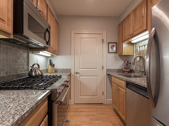 Welcome to Minot Hall, Unit 509. Rear facing and very quiet, this light flooded home offers a thoughtful layout, graced by two bedrooms and one bathroom, spacious living room and dining area and charming Juliet balcony, overlooking the recently re-landscaped common patio. Well appointed kitchen featuring stone counter tops, upgraded stainless appliances, including a 5 burner gas stove with exterior ventilation. Generous closet space and storage throughout. Luxury city amenities also include central A/C and designated heated garage parking space with room for additional storage. The building has the ease of an elevator and professional management. The home resides in the vibrant South End, with close proximity to the area's popular restaurants, public transportation and highway access. Heat and hot water