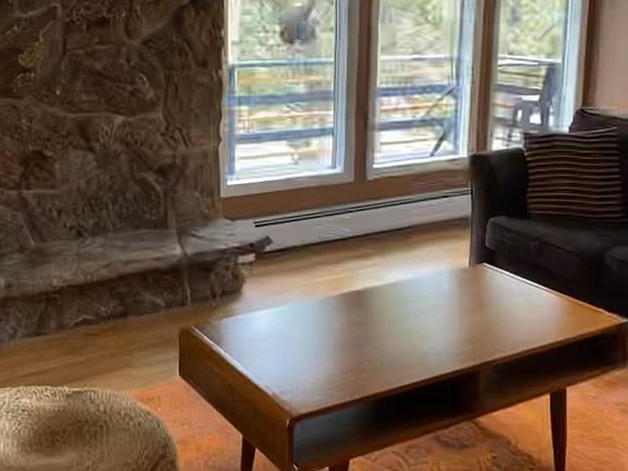 Unique home inspired by Japanese design and Frank Lloyd Wright. All utilities included in rent! Seeking peaceful and responsible renters for gorgeous Estes Park home. One of a kind home with huge kitchen, hardwood floors, open floor plan, large dining area, even bigger living room with vaulted ceilings and moss rock fireplace. The wrap-around deck is the best place to enjoy morning coffee and evening sunset. Three large bedrooms and full bathroom on main level, with additional den/office and family room and full bath on walk-out lower level. Fully furnished, or you can bring your own furnishings. Attached garage and plenty of parking. All appliances provided also. Neighbors are very quiet and respectful. A short walk to the golf course and bike trail, a short bike ride (1.25 miles) to lake Estes and the visitor's center. Gorgeous mountain views of mummy ridge, lots of trees, gentle sloping large almost 1.5 acre lot with daily visits from wildlife. Located off fish creek drive on a private road. (note: photos taken before hardwood floors installed). No Smoking. Background check required and positive rental history. Seeking respectful, environmentally conscious tenant(s). All utilities included in rent price, including lighting fast internet, heat, water, electric, trash and recycling.