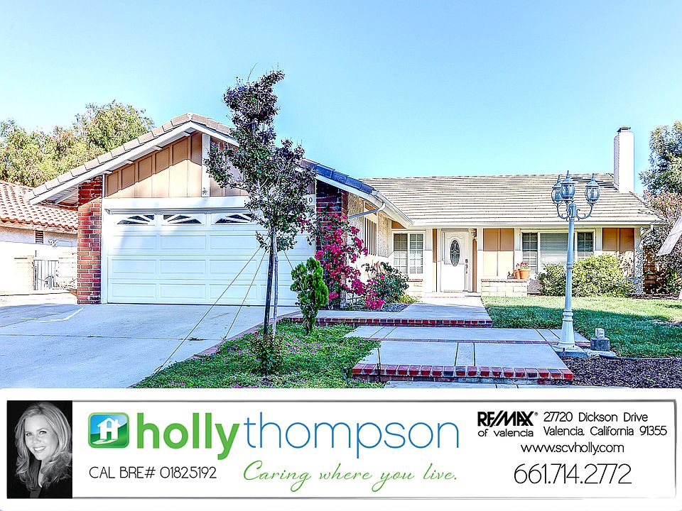 Welcome to this fabulous four bedroom home located in a sought after neighborhood with great views and easy freeway access. The large lot is set atop a hill with mountain and city views from the backyard. Relax in style with a great covered patio featuring ceilings fan and a built-in barbecue area. Transform your new home into the perfect place for entertaining, with surround sound in the backyard, living room, and even the master bedroom!Step inside and you will find gorgeous hardwood flooring in the living room with a cozy fireplace. The eat-in kitchen has been fully upgraded with granite countertops and backsplash, newer solid wood cabinetry, and stainless steel appliances. The breakfast bar is a great spot to catch a meal on the go, while there is also a formal dining room. The family room offers direct access to the patio, which is sure to become a favorite spot for sipping your early morning coffee as you enjoy views of the sunrise against the mountains. You will love the fact that you can enjoy these same views while cleaning up inside from the large window over the kitchen sink. The wood flooring continues throughout the main living areas, with brand new carpeting in the bedrooms.The master bedroom suite provides a lovely retreat with walk-in closet and en-suite bathroom featuring a new shower with seamless door. All the bedrooms feature brand new ceiling fans and recessed lighting. Designer mouldings throughout and newer double paned windows give this home such a solid feel. Practical features include built-in cabinetry in the garage, a work bench with sink, a large attic with pull-down stair, and high tech A/C controller. This home comes complete with a two car attached garage, huge garden area in the side yard, and Mitchell Elementary school district boundaries! For More Information about this Listing or to View all of my Listings please visit www.SCVHolly.com or Call Me Today at 661-714-2772 to Schedule a Private Showing!