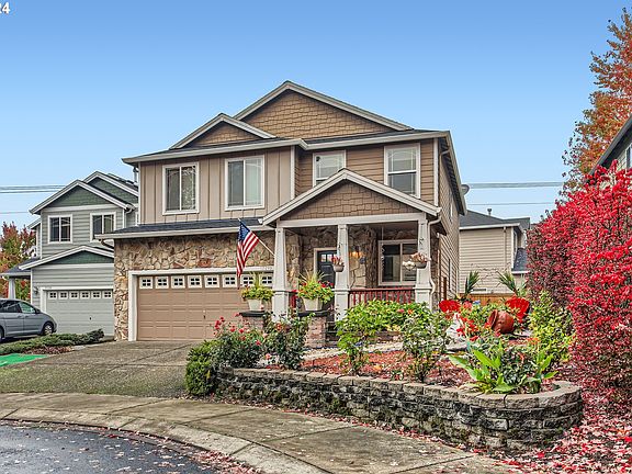 Welcome to this beautifully maintained Craftsman-style home nestled on a peaceful cul-de-sac in the desirable Five Oaks neighborhood. This move-in ready gem features 4 spacious bedrooms, 2.5 baths, and an open floor plan designed for modern living. The gourmet kitchen boasts top-of-the-line gas cooking, stainless steel appliances, butler's pantry, and an island convenient for casual dining. This space flows seamlessly into a bright, welcoming living area which features a cozy gas fireplace—perfect for relaxing or entertaining. A sliding glass door off the kitchen opens to the backyard, enhancing the home's indoor-outdoor living experience. A large family room at the entrance offers additional space for gatherings.Upstairs, retreat to the elegant primary suite featuring vaulted ceilings, dual walk-in closets, spacious jetted tub, double vanity, and tile flooring. You’ll also find convenient laundry and a skylight in the hallway that floods the upper landing with natural light.Step outside to a fully fenced, low-maintenance backyard, featuring an outdoor fireplace, ideal for cozy evenings or hosting gatherings and a serene front yard with its peaceful garden setting. The two-car garage and additional driveway parking add to the home’s practicality, with the washer, dryer, and fridge included. Situated just minutes from freeways, shopping, dining, recreation centers, Intel and Nike headquarters, this home offers the perfect blend of comfort and convenience. Don’t miss the opportunity to make it yours!