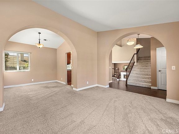 Tucked away at the end of the cul de sac in the west Yorba Linda neighborhood of Terra Linda, this move-in ready home offers 3 large bedrooms with ceiling fans and 2 and 1 half baths. It features vaulted ceilings, dual pane windows, HVAC that is approx 8 years old, new ducts in attic, recessed lighting, hardwood floors and lots of windows to let in natural light. The open and spacious kitchen has granite counter tops and walnut-colored cabinets. You also have a formal living room with large picture window looking out to the front and a formal dining room. As you step down 3 stairs you enter the Family room which has a fireplace and sliding door that leads out to your spacious backyard perfect for get togethers. There is also a separate laundry closet and 1/2 bath that was remodeled in 2022. Upstairs you have the 2 guest bedrooms that look out the front of the home and large guest bathroom with shower and tub. The master bedroom is tucked away in the back with mirrored closet doors. The master bath has double sinks and a large jacuzzi tub that is also plumbed for a shower as well. There is convenient direct garage access that leads to the 3-car garage. This home has lots of privacy since it sides the greenbelt walkway and looks out to the park. This community is well manicured with multiple large grassy areas and peaceful walkways.