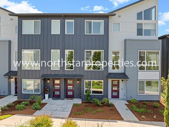 This townhome offers a flexible 3-bedroom floor plan designed for convenience and style. The main floor features a full bedroom and bathroom, making it ideal for guests with minimal steps for easy access. The kitchen stands out with beautiful cabinetry and sleek quartz countertops and stainless-steel appliances creating a modern and functional space. The open-concept dining and living rooms are flooded with natural light from oversized windows, creating a bright and welcoming atmosphere. This home also features a balcony just off the dining room, providing the perfect space for entertaining or enjoying outdoor moments. Upstairs, two additional bedrooms each come with their own en-suite bathrooms and spacious closets. Conveniently, the laundry room is also located upstairs. The garage is equipped with an electric vehicle charger, adding a touch of sustainability and convenience to this thoughtfully designed home. Scholls Hts Elementary School Constega Middle School Mountainside High School Cat or small dog allowed. No smoking/vaping of any kind allowed. North Star requires proof of insurance of $1M (one million dollars) before move in. Sometimes Zillow populates amenities incorrectly. An approved application does not constitute a contract or lease agreement with the management company or homeowner. Please see our website for information on application requirements.