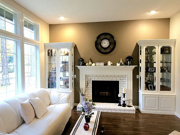Fully fenced backyard with Wi-Fi controlled sprinkler system. Heated in-ground pool with diving board, Fire pit and raised garden beds with an apple tree, expansive Trex deck off the kitchen and private deck off the primary suite, Hot tub pad with 60-amp service, Large garden shed, fresh exterior paint, and new gutters 36x 48 shop with 136 ceilings, Wood pellet stove, two-post car lift, 40' of usable attic for storage, Insulated gym and 2nd-story custom office/man cave (36 x 10) with mini-split A/C & heat, built in ceiling speakers, wired for network, 90-amp RV panel. Interior Highlights: Whole-home water filtration and softener system, Central A/C and wired security camera system for both home and shop. Updated kitchen with custom cabinets, open shelving, tile backsplash, and new appliances, Two fireplaces, Theater room with attached media library, all components included. Primary suite with dual sinks, jetted tub, walk-in closet, and private deck. 3-car garage with mudroom and built-in cubbies.
