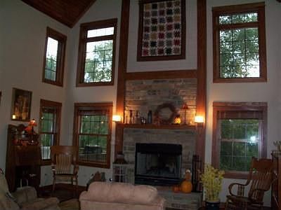 Once in a rare while will a truly magnificent home such as this be available.Built without compromise the home only reflects the very best plus sits on a wooded lot.Beautiful oak trim,doors and stairway to the upper level greet you as you enter the home from the country style porch.Oak trim and doors thru out the home.L.R. w/pine cath.ceilig makes the liv.room a show place.Eat-in kit. feat.mission style cab.7ft.island and stainless steel appl.plus pantry.Fam.room will take your breath away when you see the cath.ceil.w/open beams you have never seen in a home before and pine wood floor. All baths feat.mission style cab. and stone sinks.Master has whilpool tub & sep. shower. The upper level open hall overlooks the flr. to ceil.firepl. and floor to ceil. windows that frame the wooded back yard.The bonus room could have many uses-Office-small bus.(stairs could come from gar.),playroom,theater room or rec. room.Full base. has work shop,rough-in plumb for bath and storm shelter.See today!!