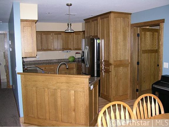 One & half stories set on 7 AC, custom qtr-sawn oak cabinets, 3-panel doors, lg bonus rm, MF master suite, mudroom, in-floor heat, heated att garage, det. 24x24 garage w/elec, fenced garden area, fruit trees, chicken coop + more only 3 miles from town.