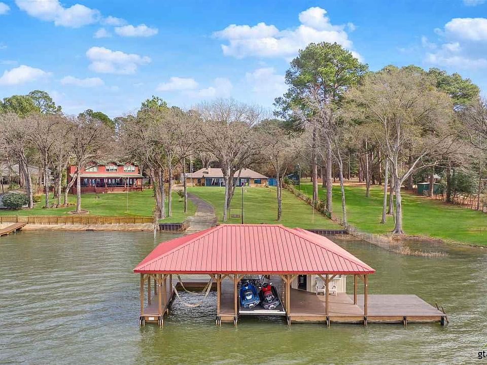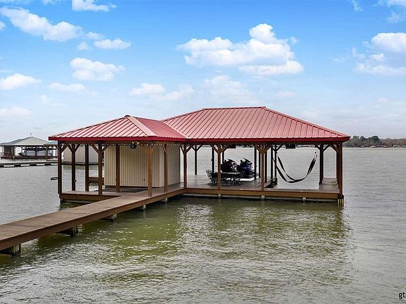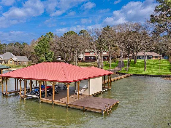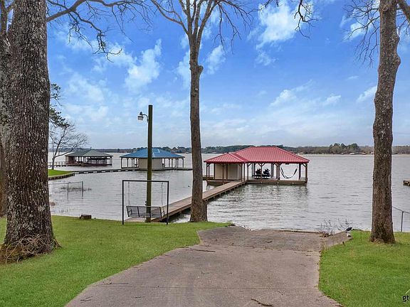 Beautiful gated waterfront home on Old Lake Tyler. Home features open floor plan with huge Family Room with Fireplace, vaulted ceilings and windows with spectacular lakeside views. Kitchen has spacious breakfast area and bar. 3 large bedrooms with split arrangement. Master bath has double sinks and a huge walk-in closet. Garage converted into a game room with overhead door still intact. Greenhouse on property for the plant lover in the family. Generator equipped to power entire home in case of power outage. Boathouse has jet ski stalls and a pontoon boat stall. Perfect water depth (approx) 9 ft. Sunset views are breathtaking! Private boat launch for your convenience. There is a 40x60 insulated metal building with 2 roll up doors, Central H/A and a bathroom. Located in Whitehouse ISD this fabulous home is waiting for your summer enjoyment! Hurry come see come buy!