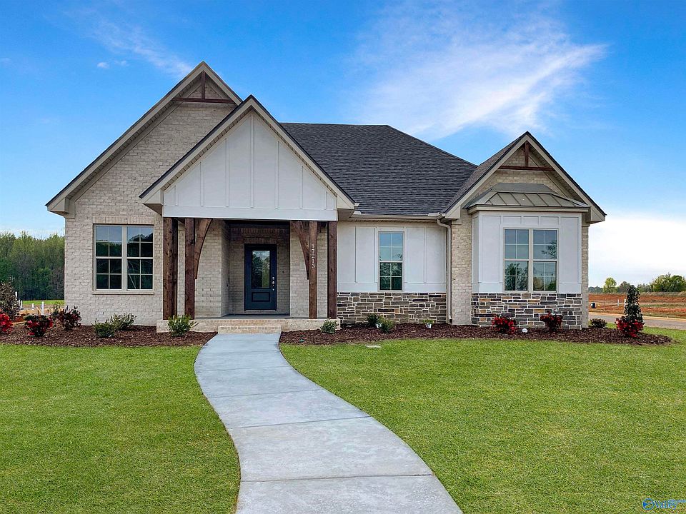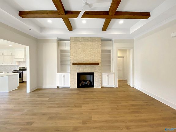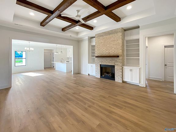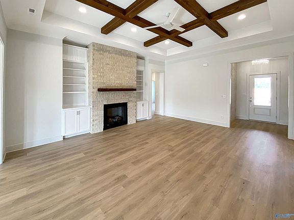 Only five miles from downtown Athens and I-65, this beautiful new construction home is officially ready for its first homeowners! Situated on a spacious corner lot, the newest addition to Watercress features five large bedrooms along with an open concept kitchen, dining room and great room. The great room features a brick fireplace with built-ins plus a gorgeous coffered ceiling with cedar beams. The primary suite highlights a stunning tongue & groove ceiling, a large tile shower with TWO shower heads, two vanities, and a massive walk-in closet. Check out the mud bench, covered back patio, quartz counters, LVP throughout, and side garage! Watercress community includes a pool & fishing lake!