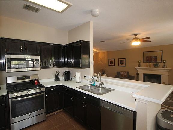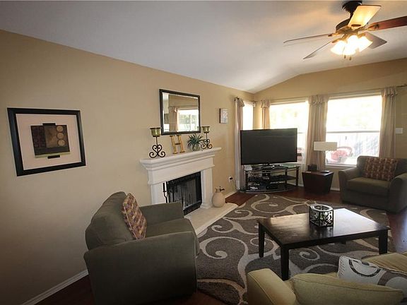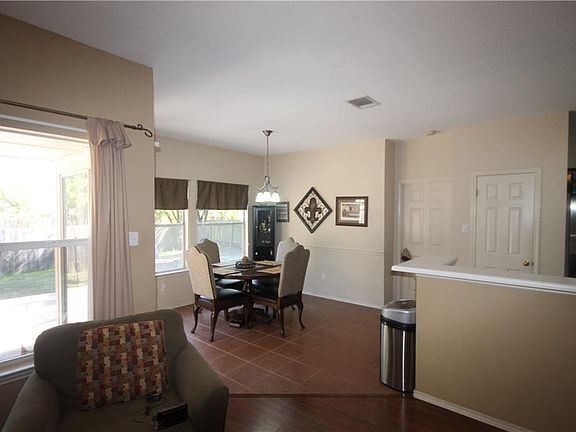 Great location for this first time rental. Easy access off I 35 and the 45. Very spacious & well laid out floorplan in this 3/2 plus a study. No carpet! All laminate & tile floors. Newer stainless appliances: fridge, dishwasher, range & space saver microwave. Covered patio extends to huge deck that runs length of the house. Washer & dryer will remain in the home as well. Backs to dry creek & retention area, so there is a small greenbelt between the next block, makes for a private and nice sized backyard.