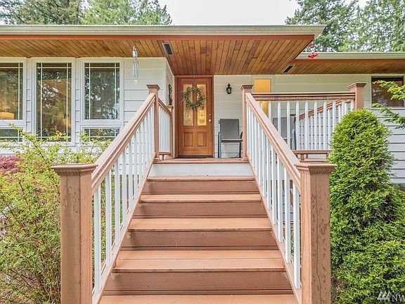 Welcome Home! Peace and privacy await you on this fully fenced shy half acre just blocks from beautiful Lake Ki. This rambler features a peek view of the lake as well as 3 bedrooms, 2.25 baths, plus a living room upstairs & large family & utility room downstairs. Newer kitchen featuring granite counters, 2 separate ovens, & stainless steel appliances. Enjoy the low maintenance Trex entryway, patio & fire pit, RV parking, shed, backing to a lush greenbelt, plus an efficient heat pump to keep you cool all summer long. You'll also love the shared beach access & rights and part ownership of a community owned Lake Ki lot complete with a storage locker for convenience. This is an entertainer's dream oasis! You won't want to miss this opportunity!
