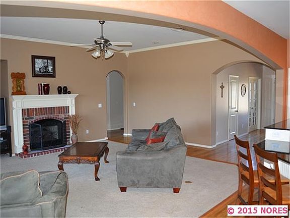 Stylish brick ranch w/open plan & arched doorways close to schools. Gourmet granite/SS kitchen w/lg island open to great room w/FP. Some HW's, separate dining & flexroom w/French doors. Generous cov patio log/chain link fence w/view of pond & trail.