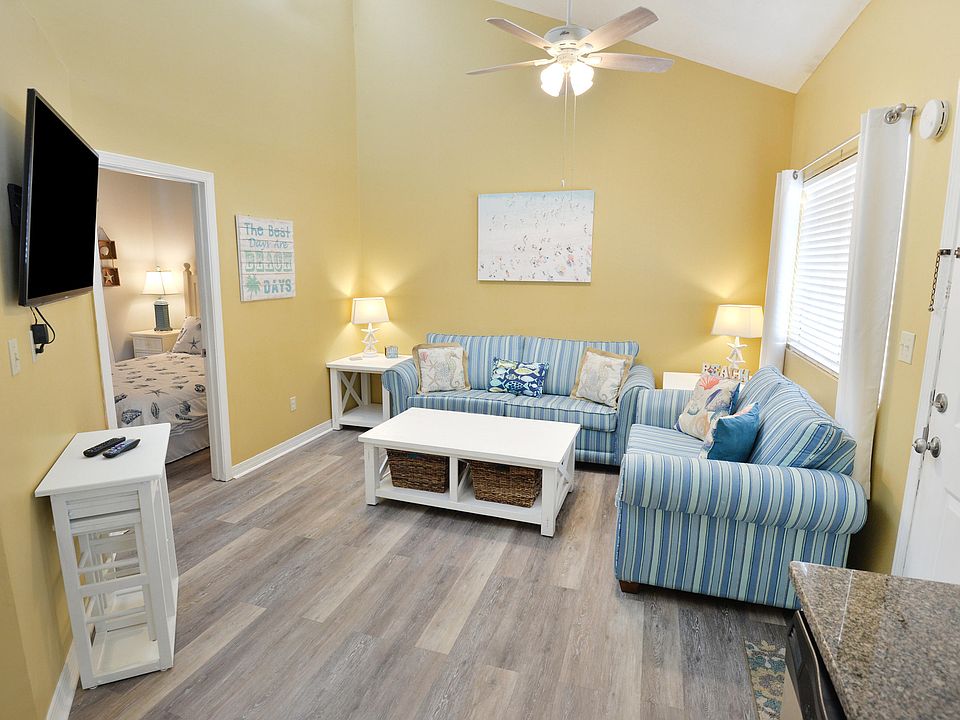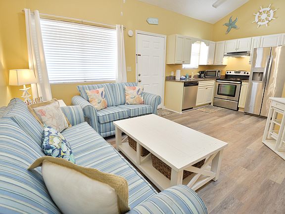 Just steps to the beautiful white sand beach on the west end of Panama City Beach. This condo has had a complete kitchen update with new granite countertops, new cabinets, stainless appliances, new flooring and LG washer/dryer before current owners purchased this unit in 2018. Great rental potential, this top floor unit has sky windows, gulf view, and escalating ceilings making it very roomy and light. Complex has great property management, pool and outdoor grills. Beach access is directly across street. New water heater installed in September 2015. Sandcastles had all new balconies and porches updated,