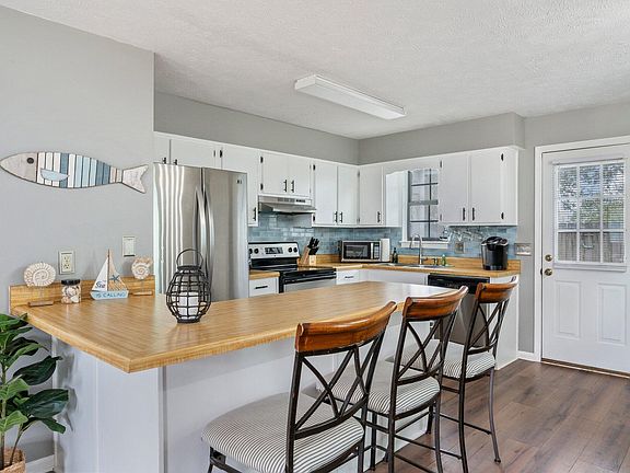 Are you looking for that perfect beach getaway or a place by the beach to call home? Well, look no further. This adorable two-story townhome is nestled minutes from the pristine shores of Panama City Beach. This townhome offers the perfect blend of coastal living and modern luxury, making it an ideal retreat for those seeking a slice of paradise. This meticulously updated townhome boasting brand-new floors, stainless steel appliances, and a stylish backsplash in the kitchen, makes this retreat a true gem in the coastal market. As you enter you are greeted by the open concept layout that flows seamlessly from the living area to the kitchen, creating a bright and inviting atmosphere that is both perfect for relaxing and entertaining. The beautifully updated bathrooms have also also been treated to the same level of attention with new floors, vanities, and dazzling gold and bronze accents that adorn the fixtures, hardware and accessories throughout the space.