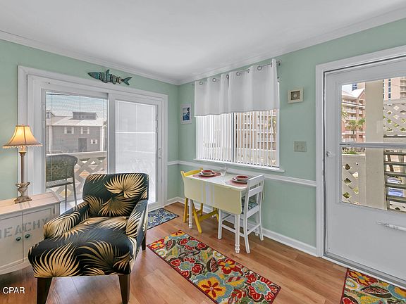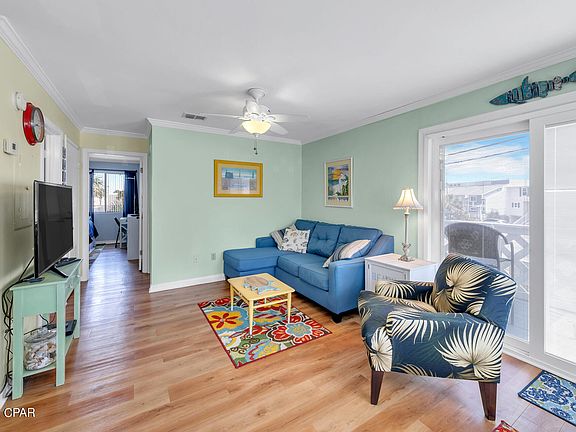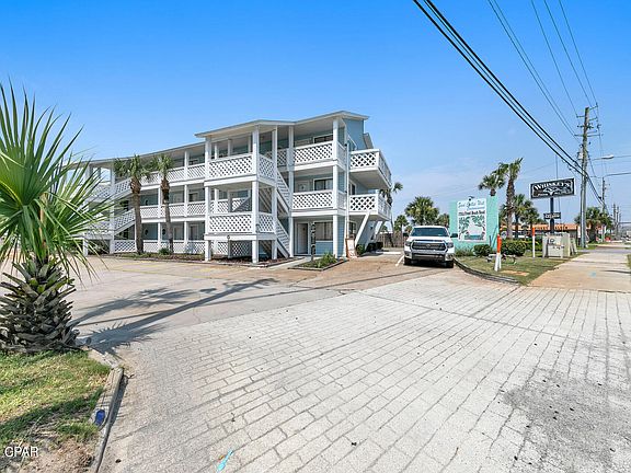 Property is under contract. Accepting back up offers for the time being. Gulf views and just steps from the beach in this charming 2 bedroom condo in west Panama City Beach! Experience that old Florida charm with this well maintained condo, while you enjoy the beautiful sunsets from your living room, bedroom and the generously sized balcony. This condo is in great condition, being a non rental for the last half decade. Nicely equipped with LVP flooring and crown molding, this beach retreat is a solid find at this price. Just steps from the community beach access, all the while being in close proximity to shopping and dining. The location also offers easy access to ECP airport. This low rise complex has 2 community pools, a clubhouse, low HOA fees that include everything but electric, taxes and insurance. If you're looking for a rental, it is in fact allowed with great rental potential (see docs) of 30-40k depending on owner usage. Even if you're looking to move to the beach but uncertain on where exactly, this is one of the best finds on the Emerald Coast and would accommodate a single or couple perfectly. Easy show and expected to sell quickly. ***There is currently an assessment for an addition of lightning protection systems on the building***