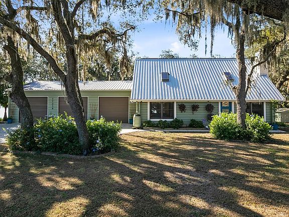 Your very own Florida PARADISE awaits! Located on private Lake Ingram, this STUNNING log cabin home has modern updates, but retains a rustic and unique charm. Your spacious living room features soaring VAULTED ceilings, a wood burning fireplace and large windows that allow in tons of natural light. The gourmet eat-in kitchen includes striking GRANITE counters and a granite breakfast bar along with STAINLESS STEEL appliances including a new range and new fridge. Double ovens will make the baker in the household happy! French doors from the dinette area open onto the new rear deck that serves up that amazing lake view; keep the doors open for an al fresco dining experience. The master suite is on the first floor and includes a wonderful sitting area that offers private access to your large, screened patio...the PERFECT spot to lounge and enjoy the tranquil lake views while remaining protected from the elements. You an also relax in the Japense soaking tub on the screened porch at the end of a long day...take a deep breath and take in the tranquility of your own personal haven. Your master bath includes a stylish glass enclosed walk-in shower, along with a new vanity and toilet. Heading upstairs youll find two additional bedrooms and a wonderful loft space. Your second floor bath features an elegant glass vessel sink, a fully tiled walk-in shower featuring a bench and three body jets for a complete SPA experience. If youre looking for garage and workshop space, youve found it! The oversized THREE car garage includes industrial doors and provides you with an ample amount of additional storage space. An RV parking pad with electric was added in 2017. Both the interior paint and the flooring is only 5 years old, and youll enjoy energy efficient windows with newer screens. The metal roof and gutters were installed in 2019, the same year the exterior was painted, and the solar panels were added. In 2020, Leaf Filters were installed on the gutters. And did we mention the water softener system and newer hot water heater, along with a whole house surge protector? Stately oak trees welcome you into the backyard and guide you to the new deck by the lake where you can take in those tranquil water and sunset views. An IDEAL place for a firepit and making smores! Stop looking and start packing, this house has everything you could want and MORE!