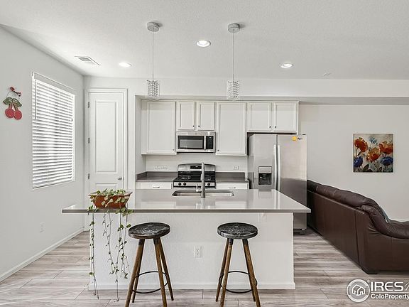 Welcome to this natural, light-filled, and inviting 2-story townhouse in the prospering city of Aurora. This charming property offers 1,553 square feet of contemporary living space, featuring 3 bedrooms, 2.5 baths, and a convenient attached 2-car garage. The spacious living room boasts an open floor plan, 9' ceilings, LVT flooring, recessed lighting, and a balcony, creating a welcoming atmosphere for entertaining and relaxation. The kitchen is a chef's dream, with trendy cabinets, Quartz countertops, an extended island with seating, a pantry closet, and stainless-steel appliances, including a gas range/oven. Upstairs, the luxurious primary bedroom offers a walk-in closet and a private 3/4 bath with dual vanity and quartz countertop, providing a serene retreat. Two additional bedrooms and a full bath complete the upper level, making it perfect for families or guests. This property is ideally located near shopping, hospitals, and restaurants, offering the perfect blend of convenience and comfort. Don't miss the opportunity to make this your dream home! Seller may need to lease back up to 30 days at the market rent rate.
