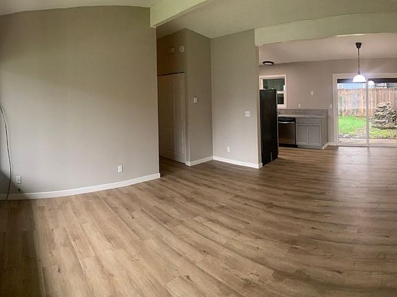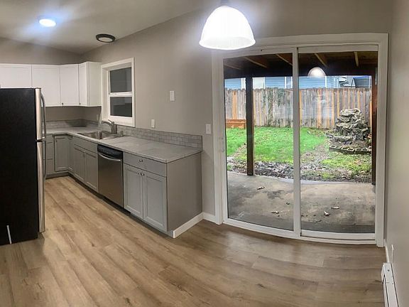 This unit in a triplex has ~848 Square Feet and has been completely remodeled. New wood-laminate flooring throughout. Kitchen boasts tiled countertops, new cabinets, and stainless steel appliances including electric glass top range, refrigerator, and dishwasher. Dining area has slider to private, fully-fenced back yard with covered patio. Stackable Washer/Dryer hookups only (tenant to provide machines) at end of hallway. Baseboard heating throughout. Separate storage shed. Designated, off-street parking for two vehicles. Within walking distance to Shops, Restaurants, and Public Transit. One small dog, 25 pounds or less, considered on a case by case with additional security Deposit and pet rent of $35/month. Viewing of property is required prior to applying. SCHOOLS: Reynolds High School, Hauton B Lee Middle School, Wilkes Elementary UTILITIES: PGE is TENANT Responsibility. Water and Sewer are included in rent. There is a $30/month Garbage charge back due to Owner. Directions: From Hwy 205, head East on NE Glisan St. Complex is on the Northeast corner of 172nd & NE Glisan St. INFORMATION DEEMED ACCURATE - NOT GUARANTEED